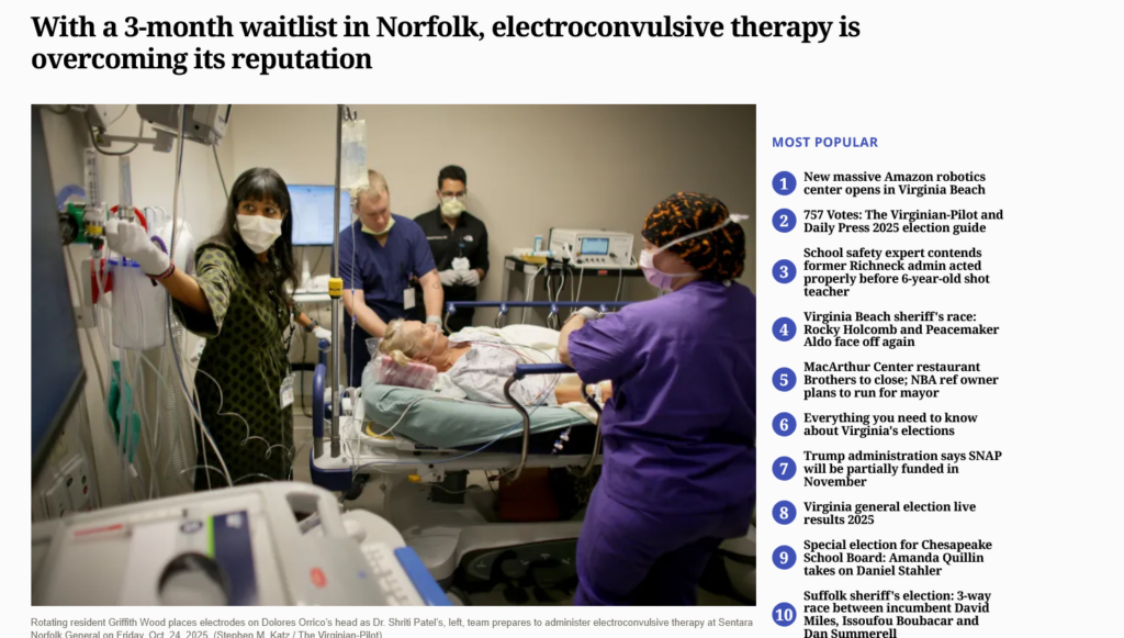 Robert Ostroff, psychiatrist at Yale New Haven Psychiatric Hospital: “ECT is the most effective treatment for treatment-resistant depression.